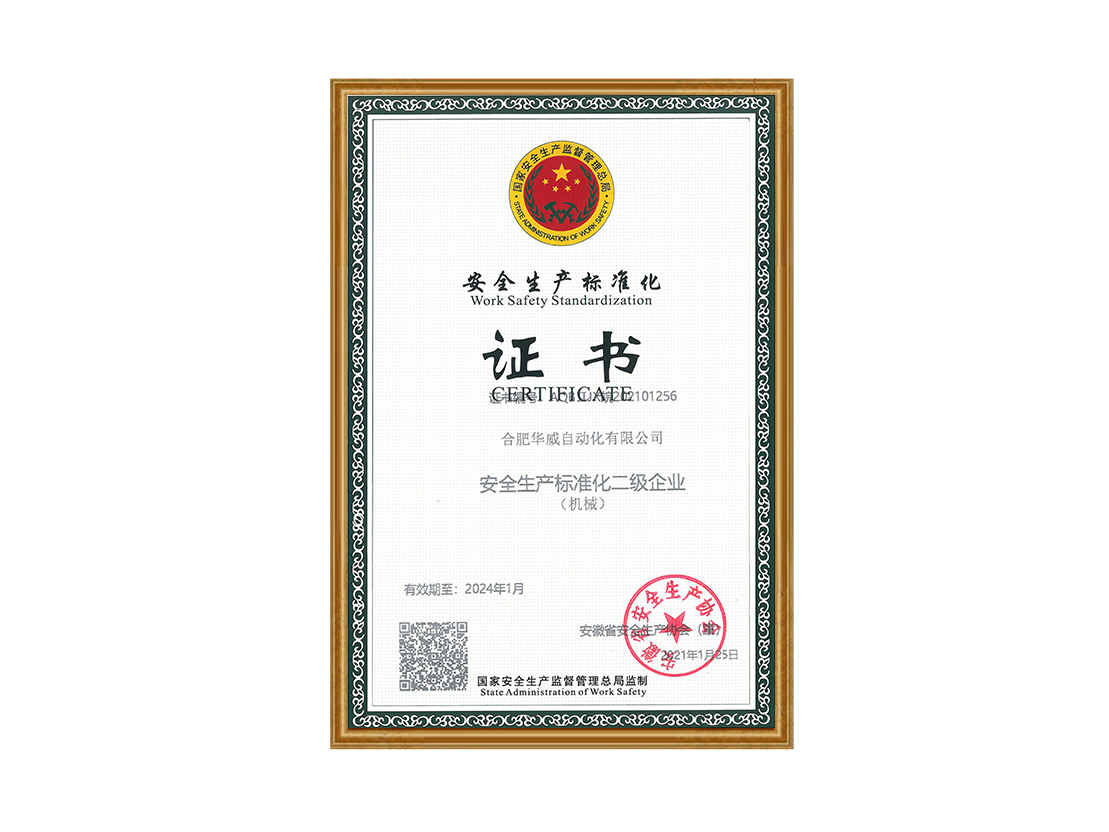 安全生產(chǎn)標(biāo)準(zhǔn)化二級(jí)企業(yè)