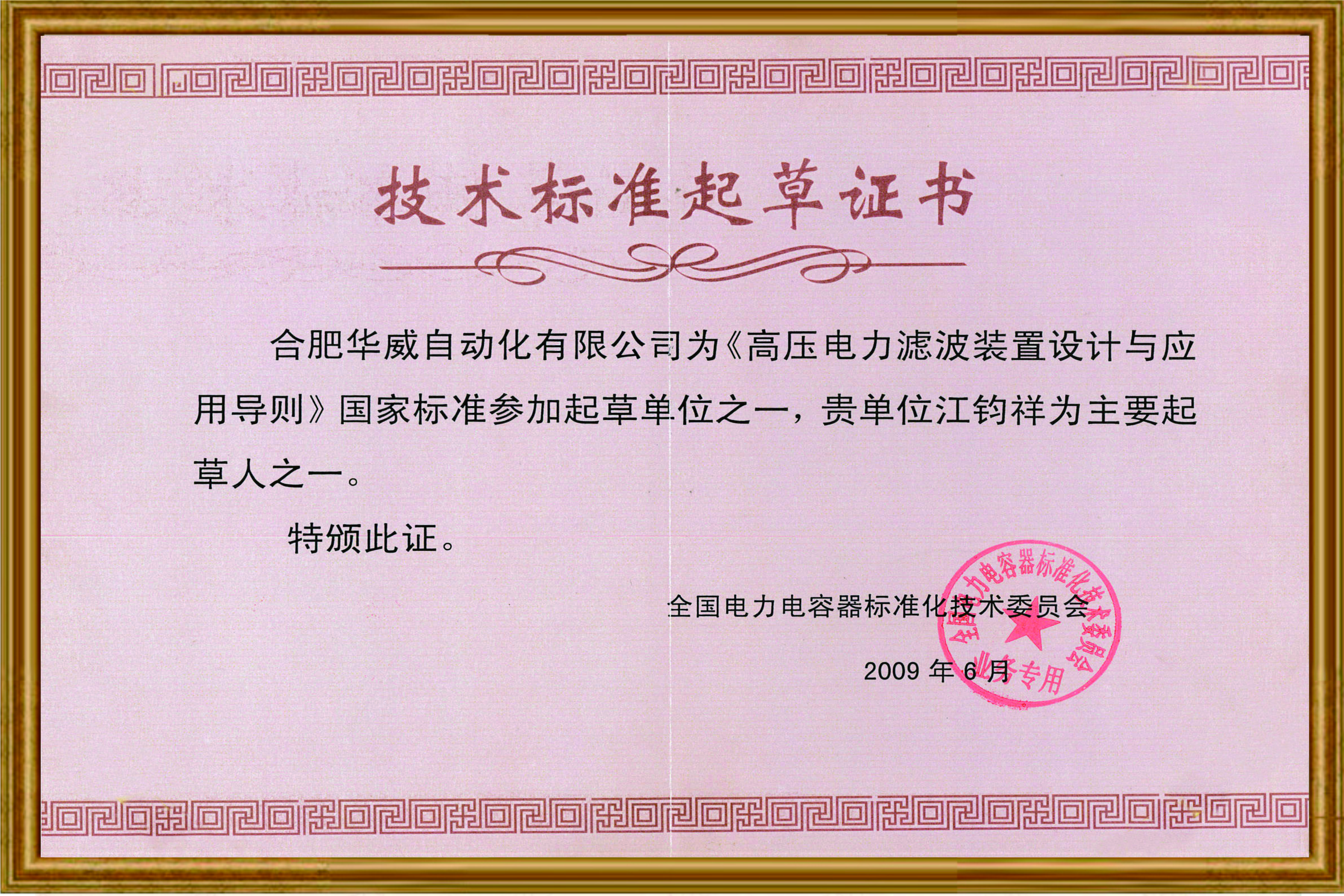 電能質(zhì)量與柔性輸配電技術(shù)產(chǎn)業(yè)化基地證書