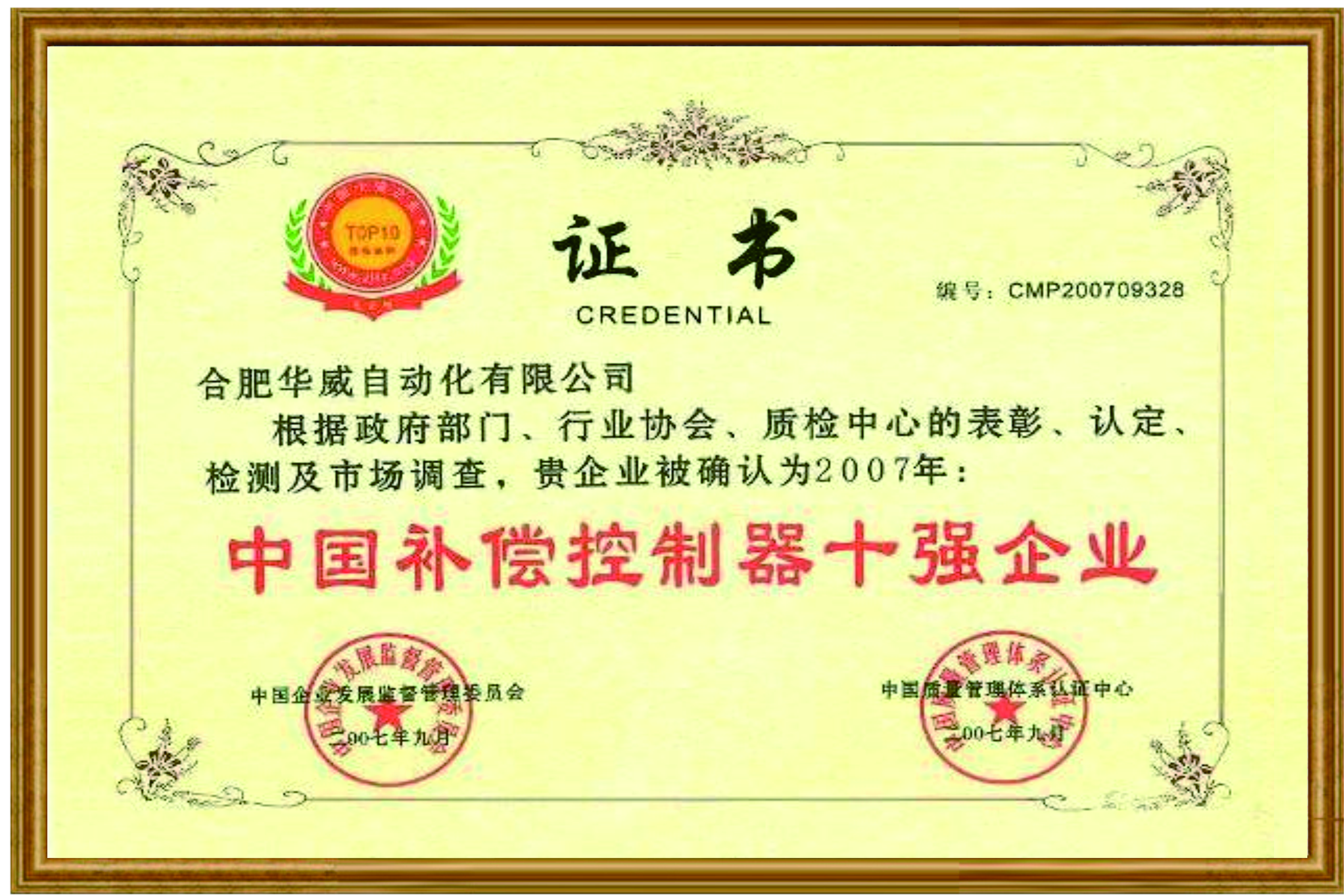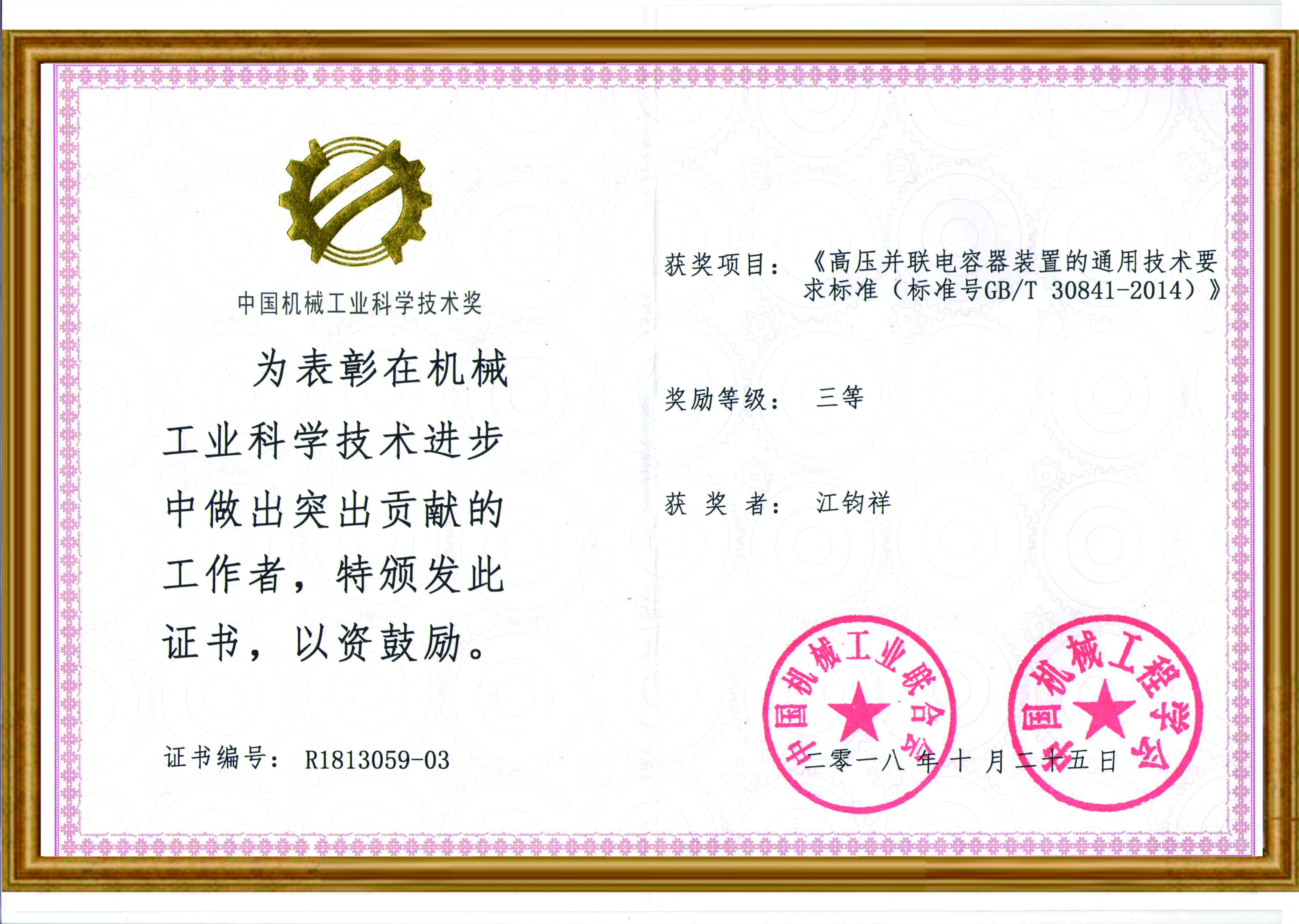 第二屆能源行業(yè)無功補償和諧波治理榮譽證書